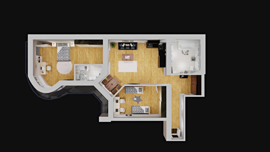 Vizualna ukažka je urobena nato aby vy ste si vedeli lepšie predstavyt možnosti zariadenia a dyzajnu bytu ale ona neukazuje presny stav bytu pri odovzdani.