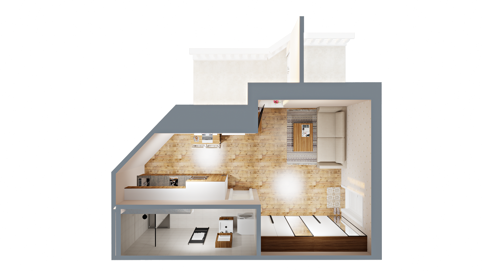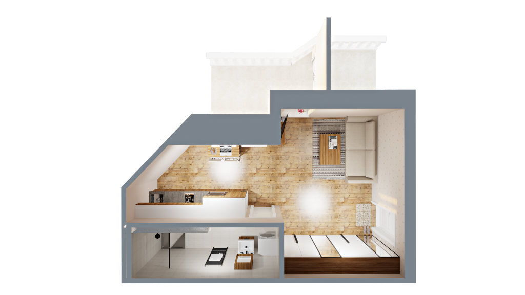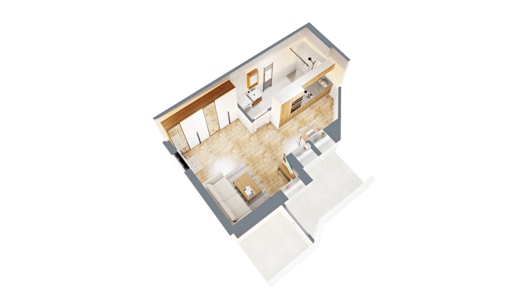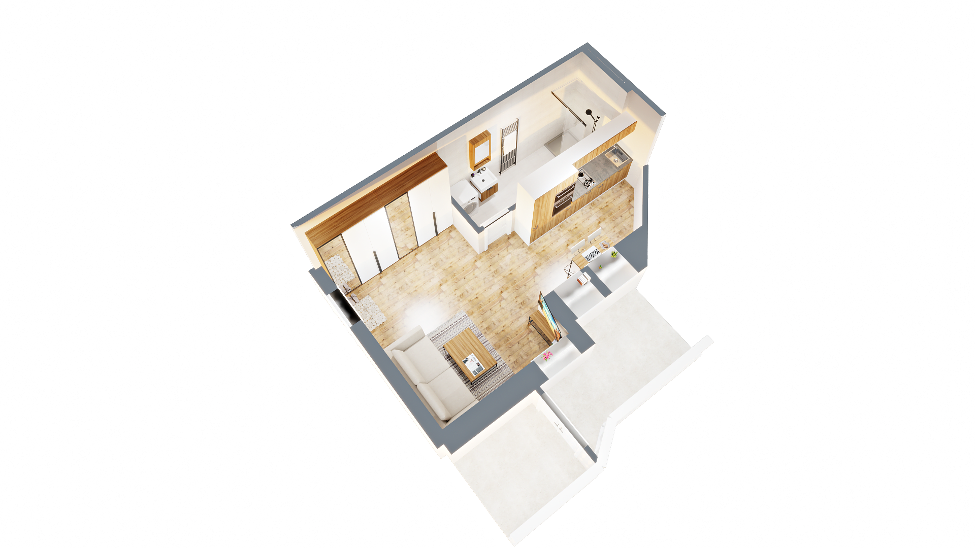 Vizuálna ukážka nepredstavuje presný stav bytu pri odovzdaní, slúži pre vašu lepšiu predstavu možnosti zariadenia a dizajnu bytu